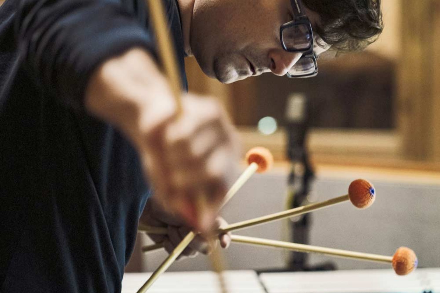 Marco spielt ausschließlich ADAMS Marimbe und Vibraphone, ZILDJIAN Becken, VIC FIRTH Sticks, BOMAP für Skins (Attack), Percussion (Gon Bops), Rammer Drum