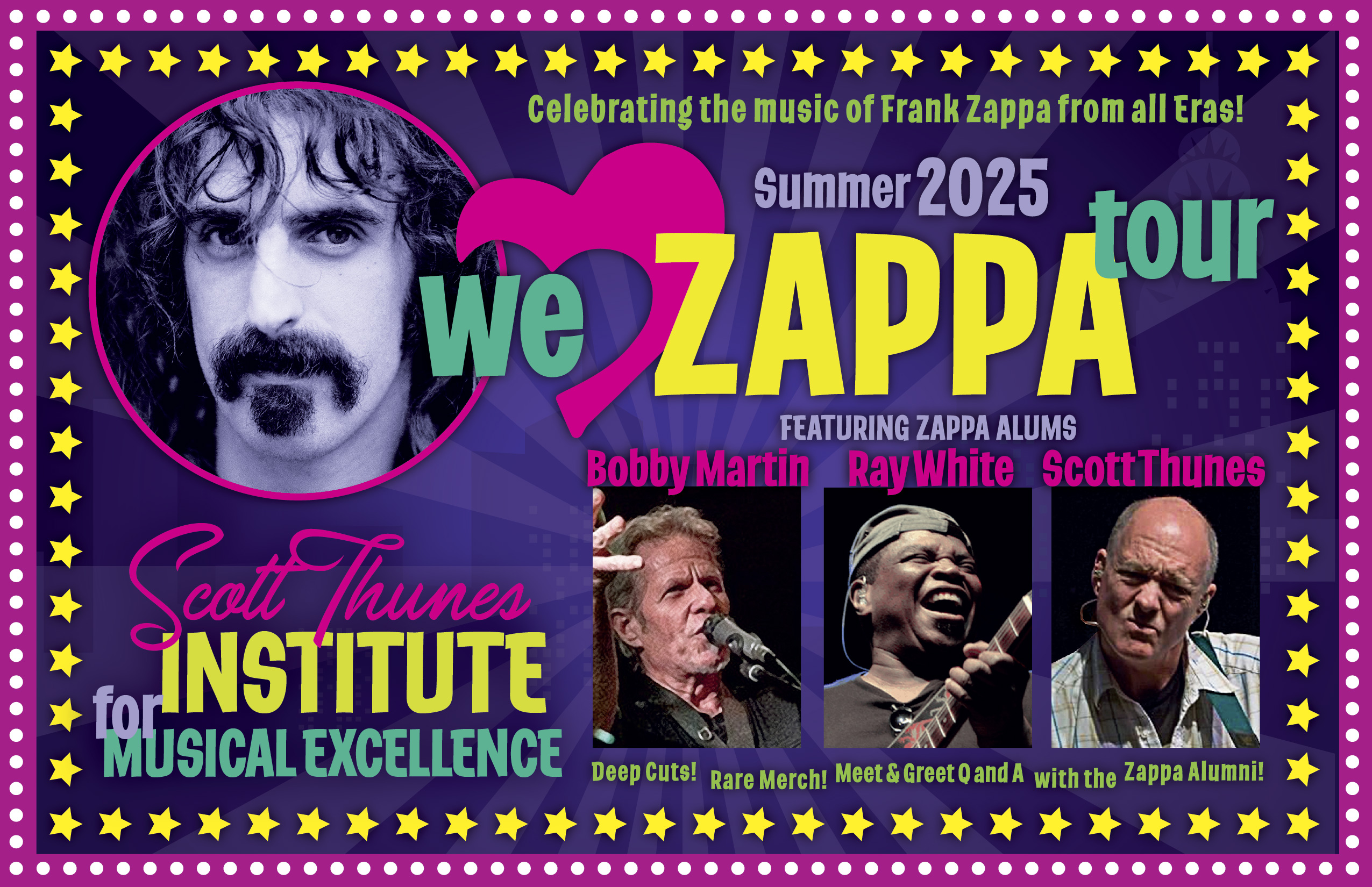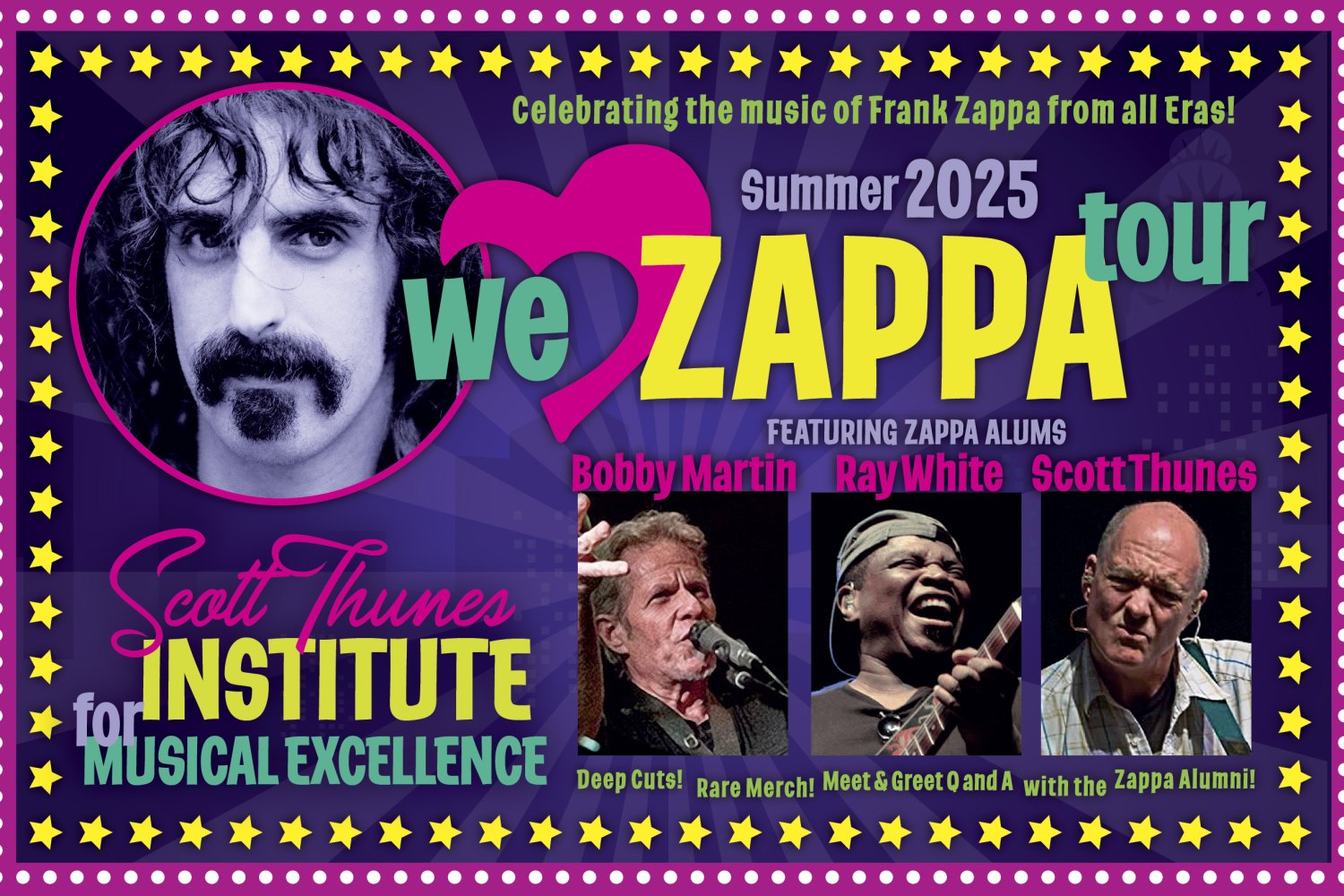 The Scott Thunes Institute for Musical Excellence ist ein Ensemble junger fortgeschrittener Musiker im Alter zwischen 14 und 20 Jahren. Sie wurden für diese Tournee rund um die Welt ausgewählt aufgrund ihrer musikalischen Fähigkeiten, ihrer Showmanier, ihrer Liebe zur Aufführung und ihrer Fähigkeit, die Bühne mit professionellen Musikern zu teilen. Es handelt sich um ein Programm, das ausschließlich auf Probespielen basiert und sich an ernsthafte und ehrgeizige junge Musiker richtet. Die letzten drei Jahre waren sie als Begleitband für Jon Anderson von YES und Gibby Haynes von den Butthole Surfers auf Tour. Scott Thunes liebt es mehr als alles andere, wenn seine Schüler Zappa spielen, und bezeichnet es als One-Stop-Shopping für Musikausbildung.