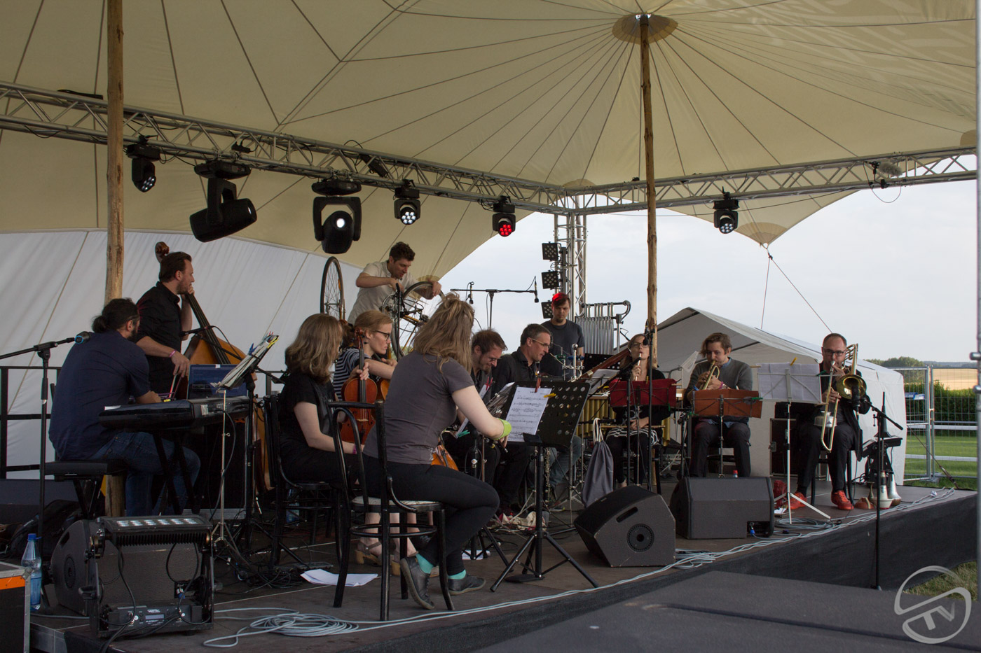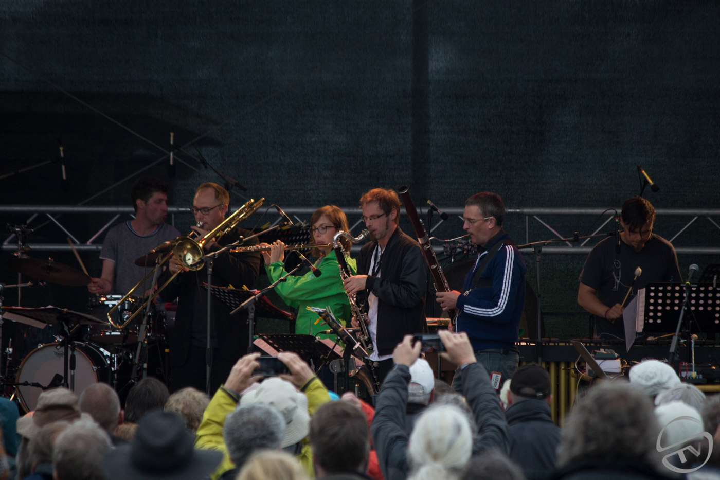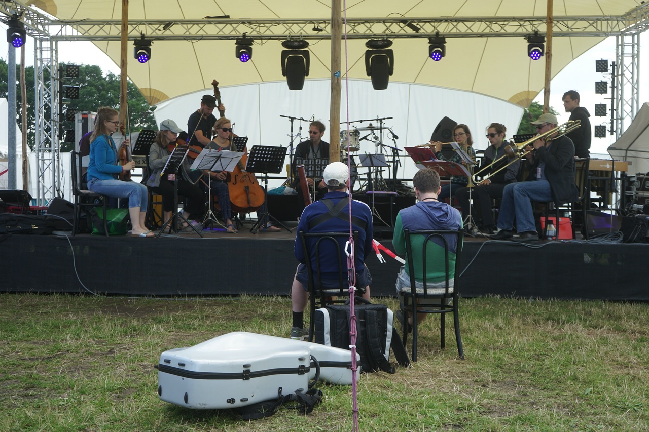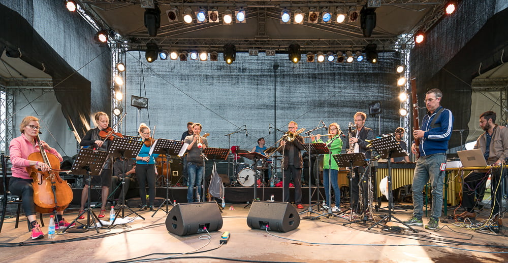 Als sich hier vor vier Jahren 17 MusikerInnen samt ihrem Instrumentarium Platz auf der Mainstage…