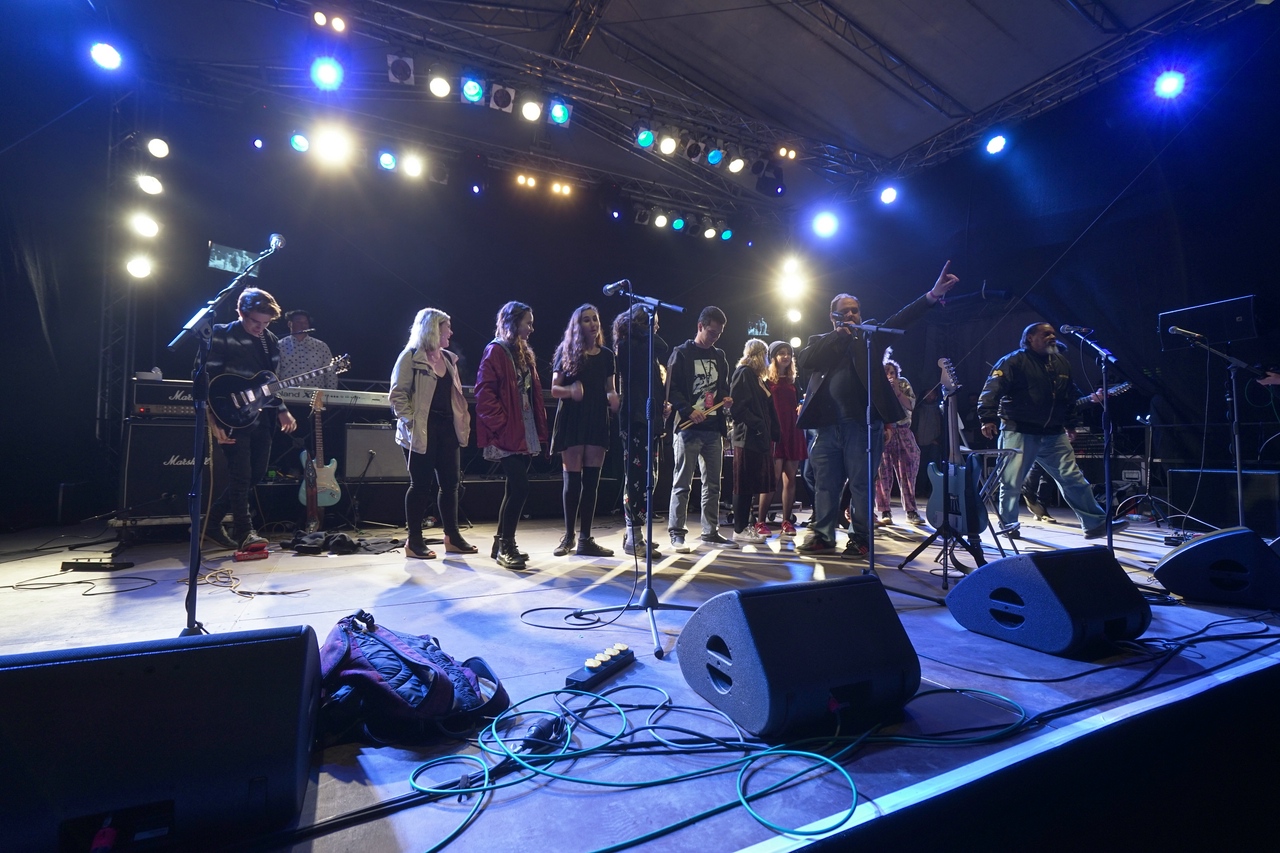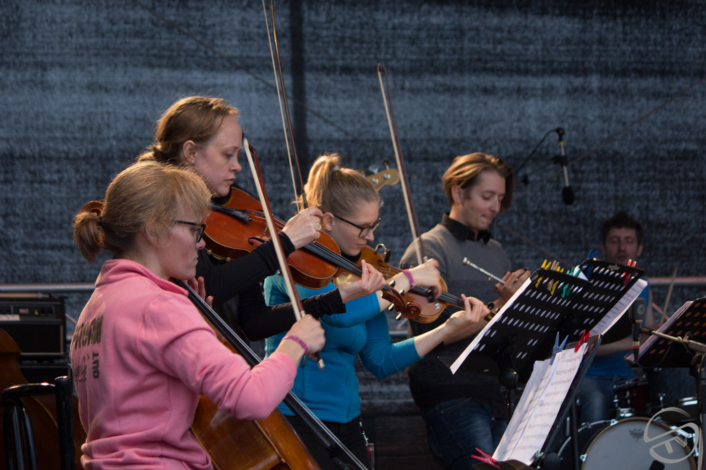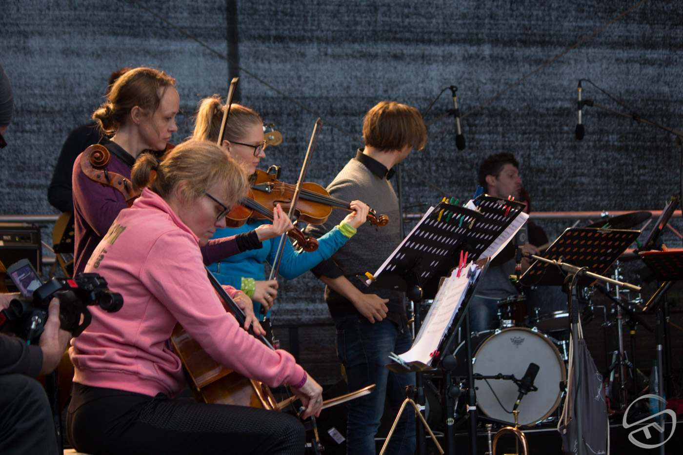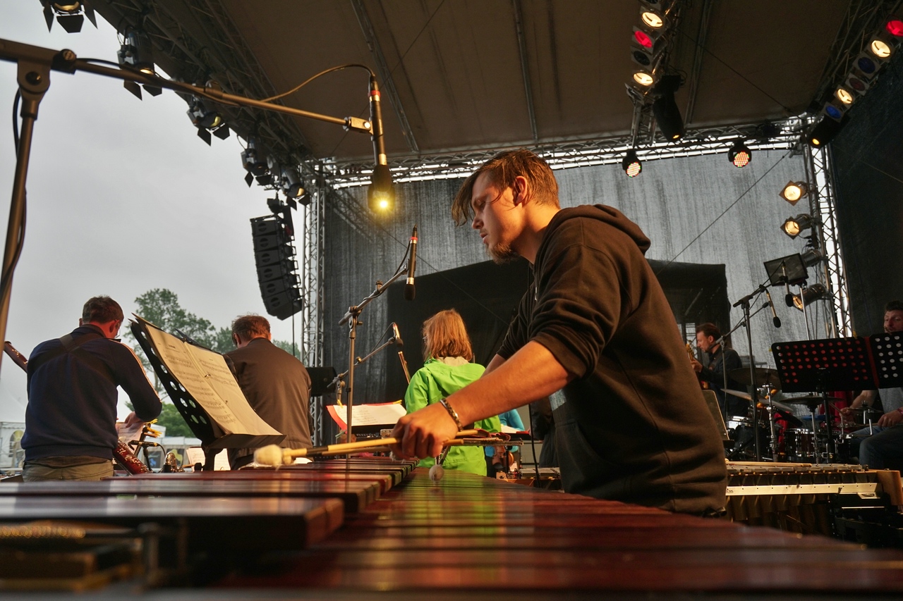 Als sich hier vor vier Jahren 17 MusikerInnen samt ihrem Instrumentarium Platz auf der Mainstage…