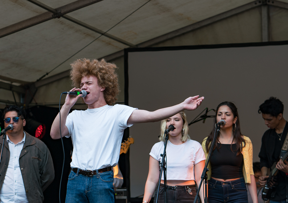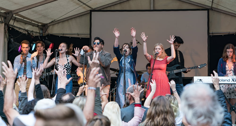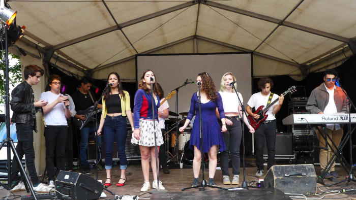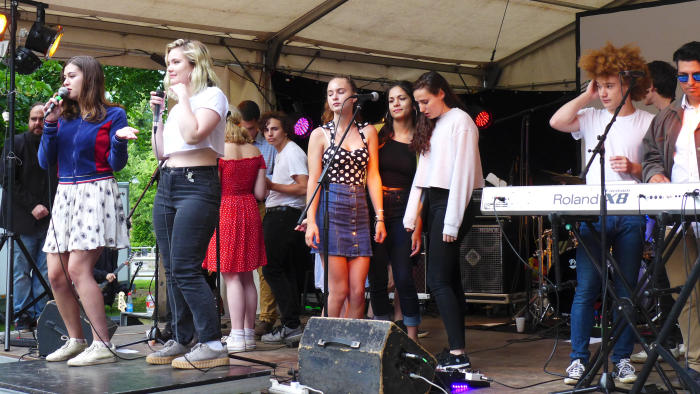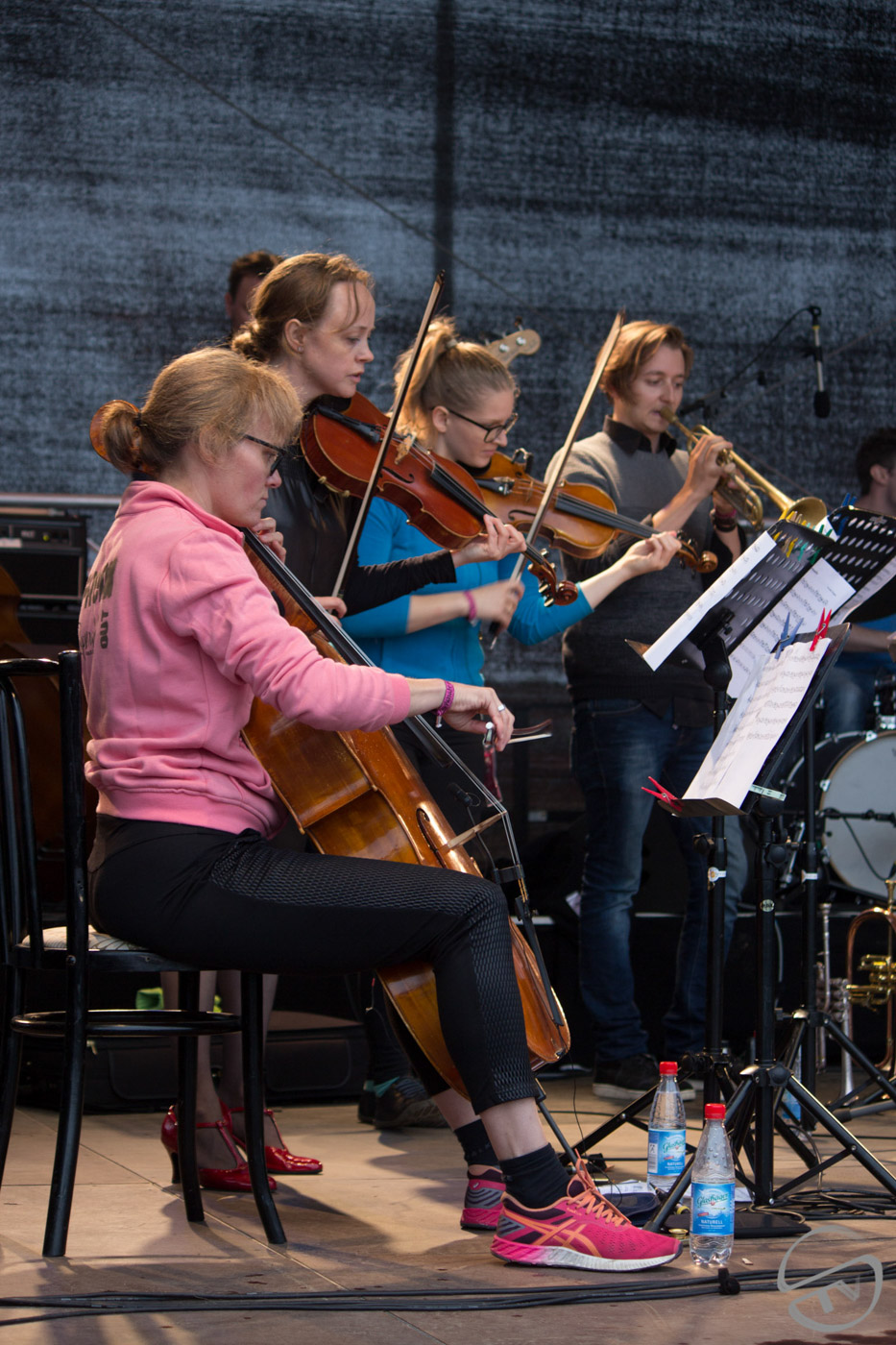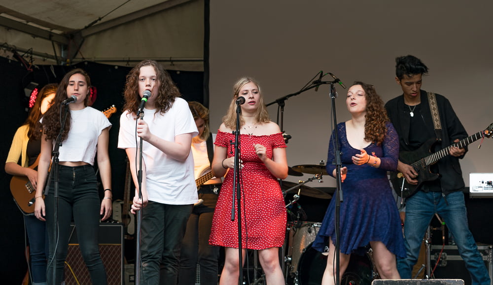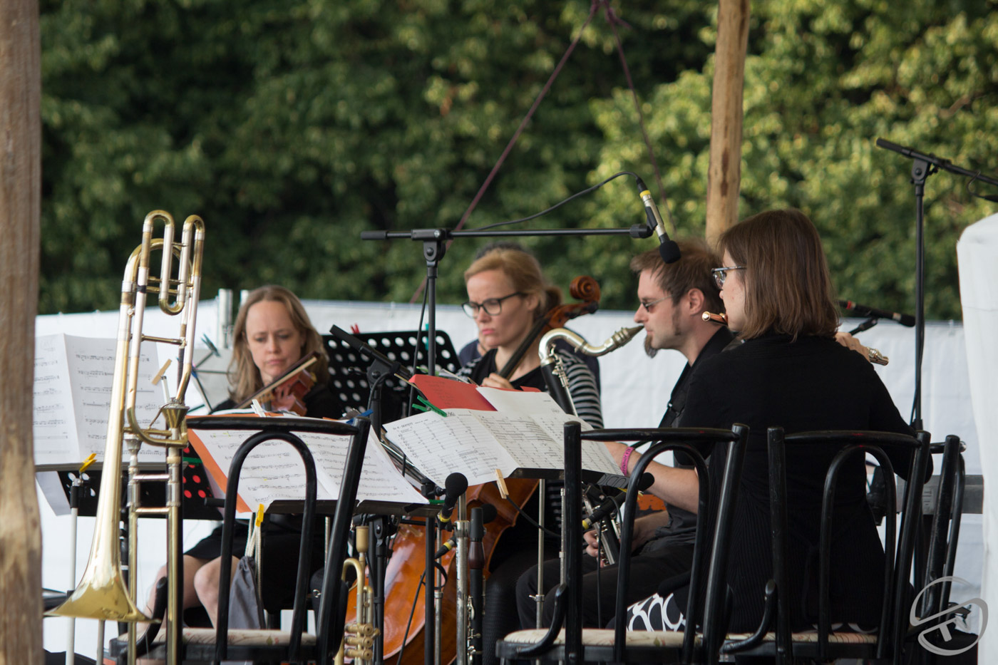 Als sich hier vor vier Jahren 17 MusikerInnen samt ihrem Instrumentarium Platz auf der Mainstage…