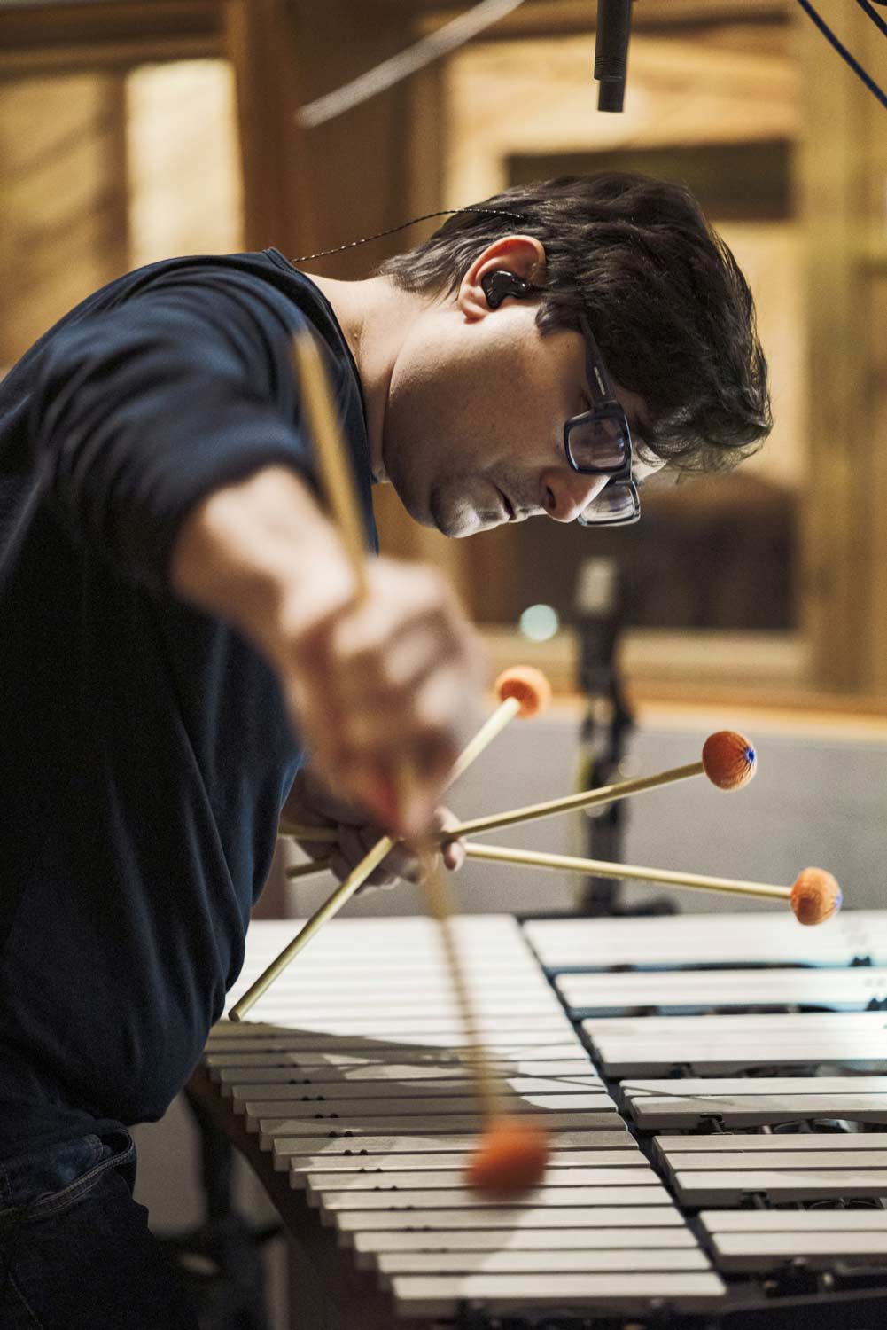 Marco spielt ausschließlich ADAMS Marimbe und Vibraphone, ZILDJIAN Becken, VIC FIRTH Sticks, BOMAP für Skins (Attack), Percussion (Gon Bops), Rammer Drum