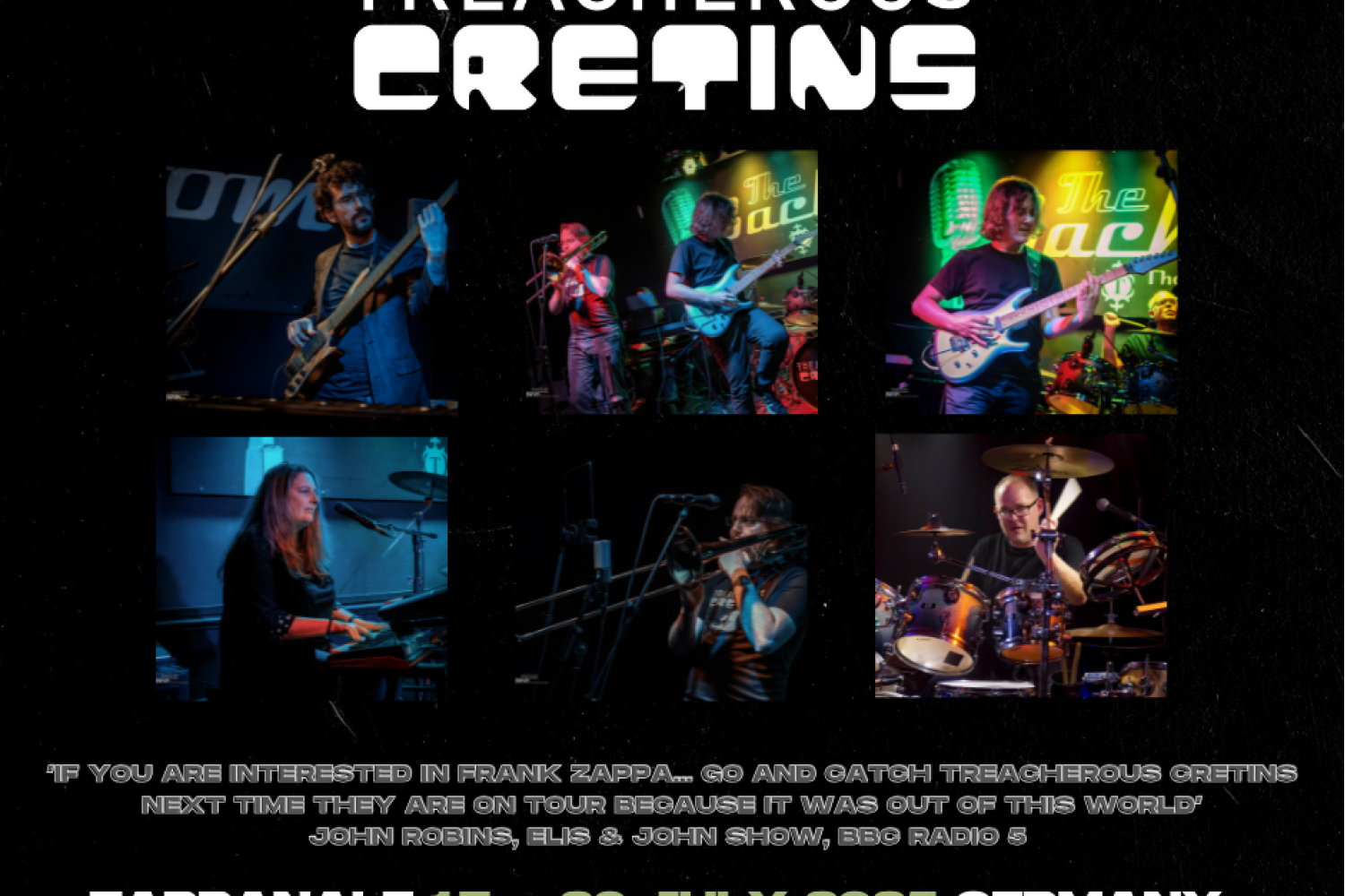 With a particular fondness for the more obscure, hard-to-play material and deep-cuts, Treacherous Cretins promises to deliver another stunning tribute to Zappa and his massive musical legacy at Zappanale 2025. Expect a generous helping of Zappa rarities and songs seldom played live by other bands as well as plenty of fan favourites.